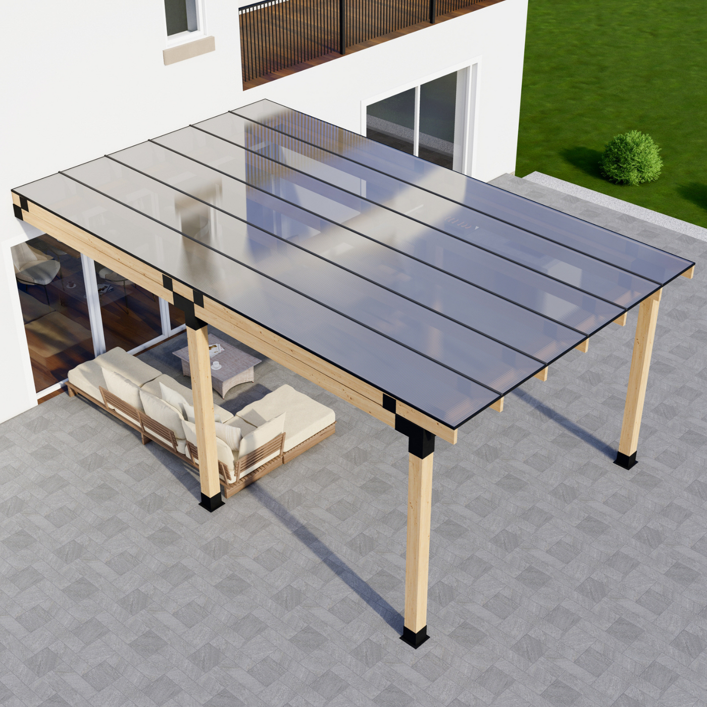 12' x 20' Pergola Attached to House with Roof
