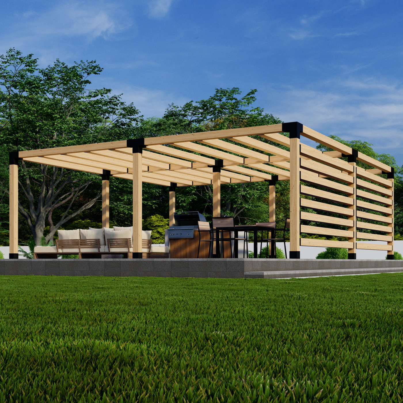 ⬩ Freestanding 1-Block pergola with a 6x6 Frame