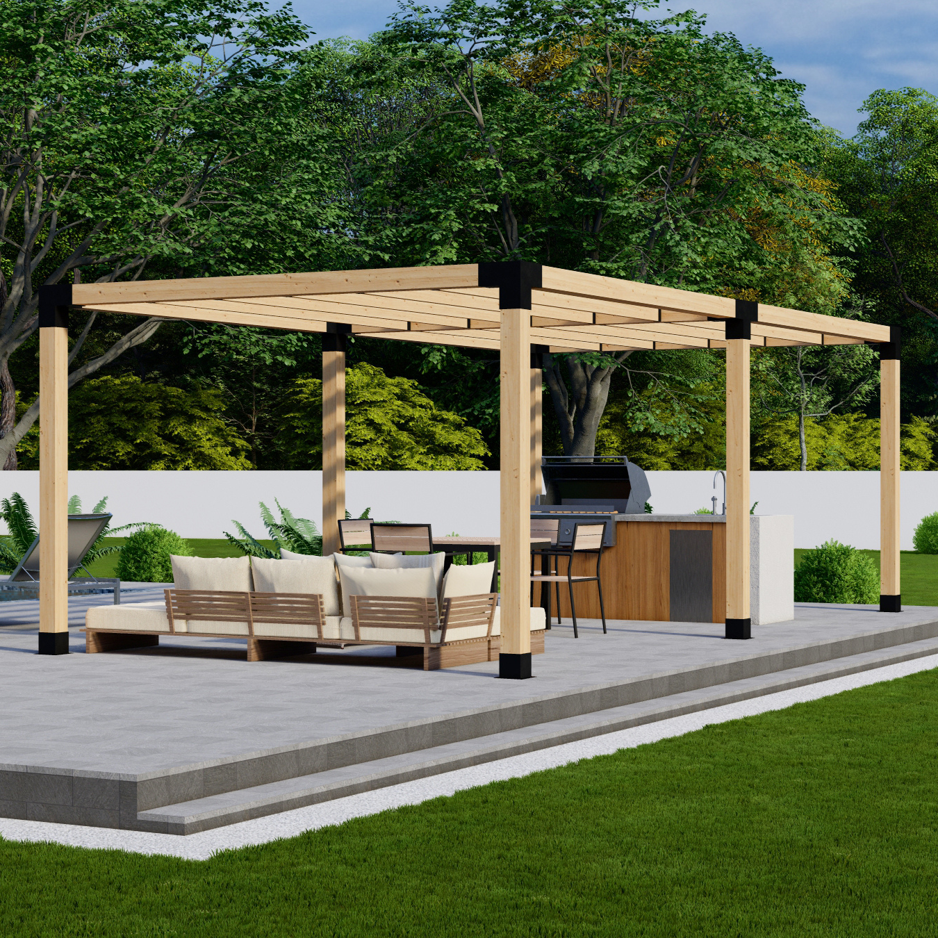 ⬩ Freestanding 1-Block pergola with a 6x6 Frame