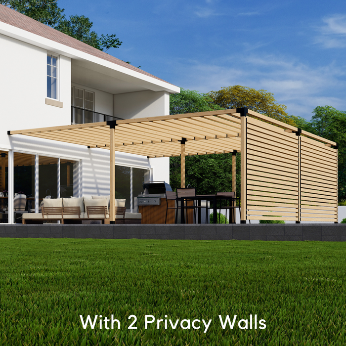 This wall-mounted pergola kit will accommodate any attached pergola ranging from 13-24 feet wide by 13-24 feet deep. The easy-to-build pergola does not need to be exactly 24' x 24' like in the images on this page.